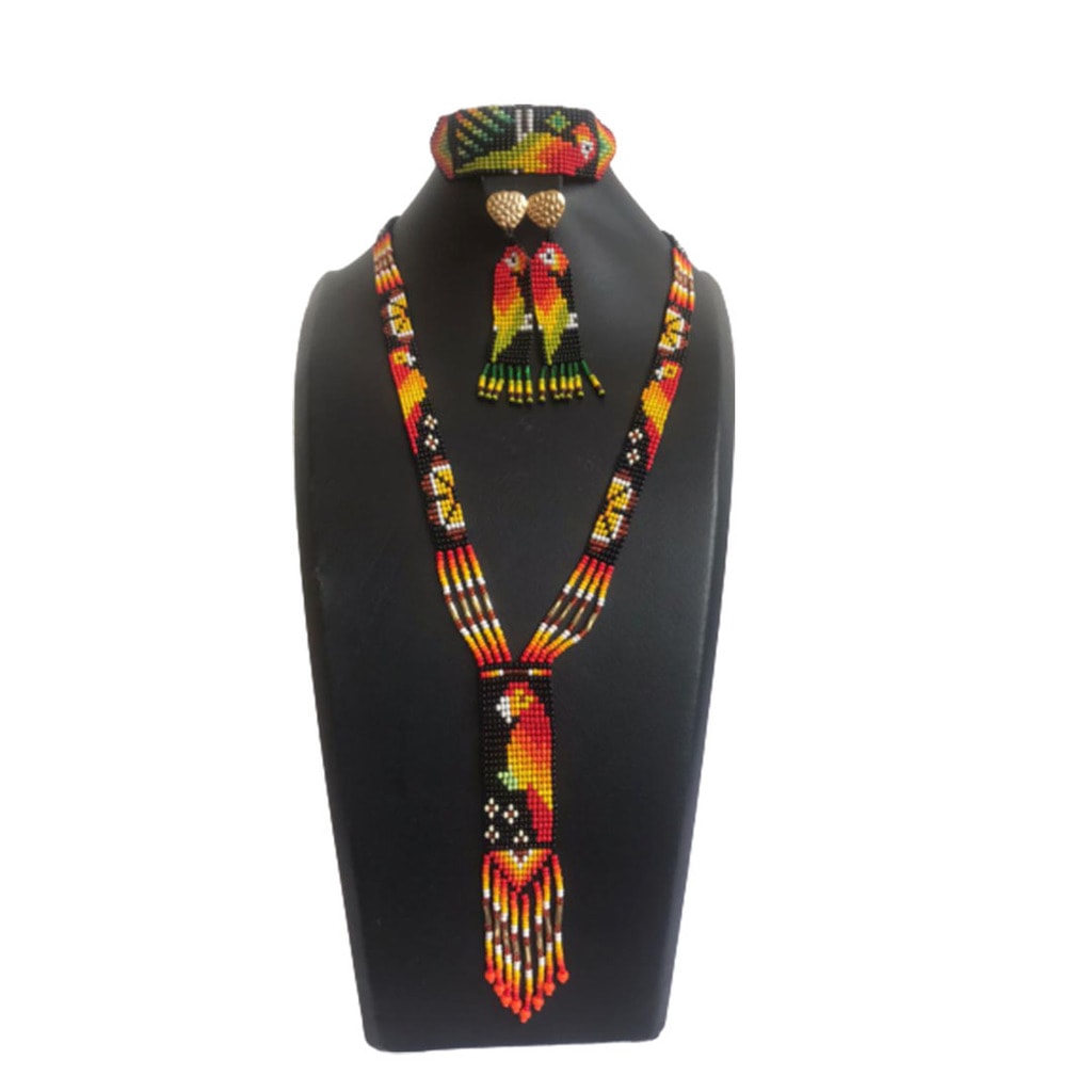 Juego Collar Tropical Diseño Guacamaya Colores Vivos